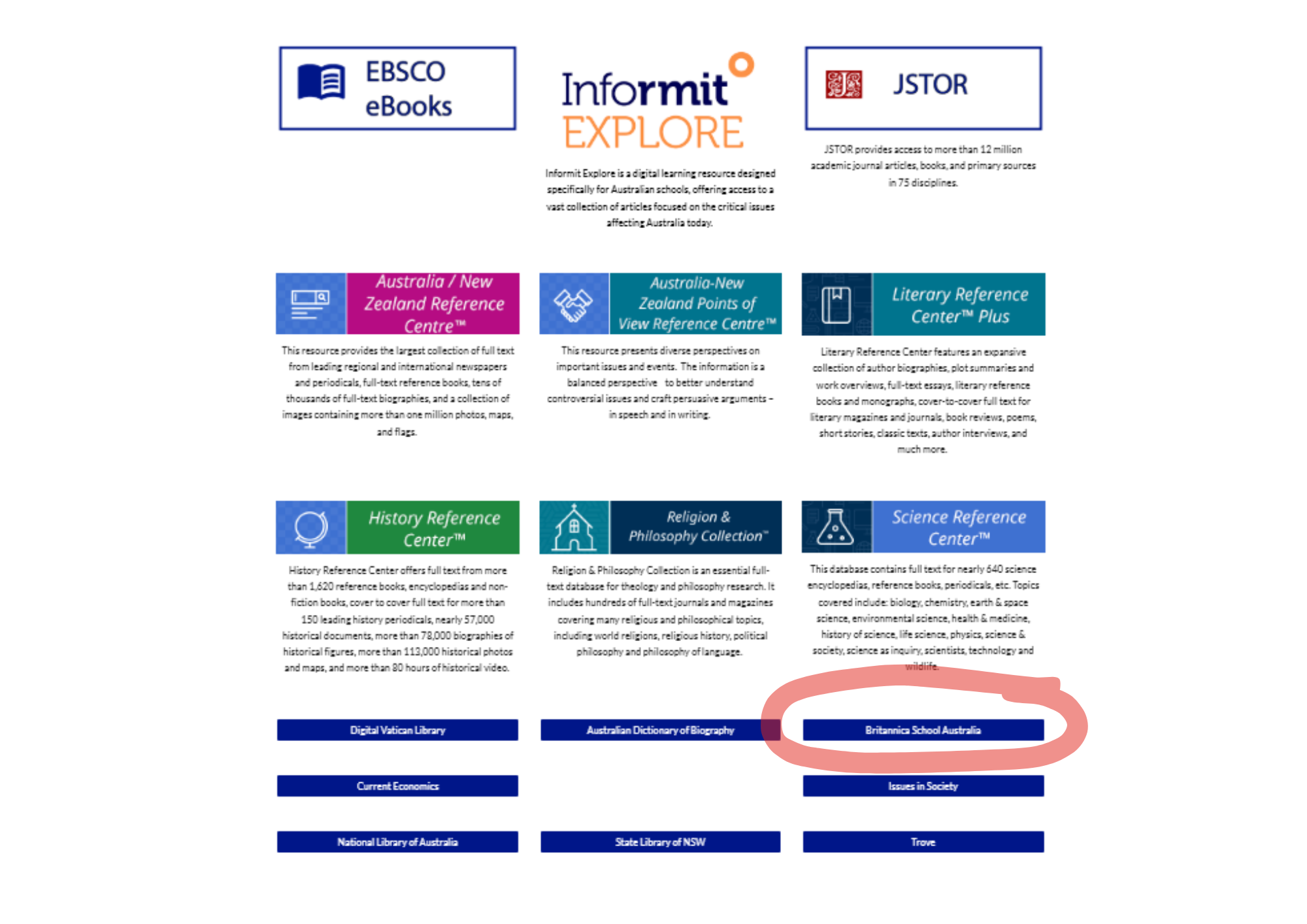 Finding Britannica School Australia database