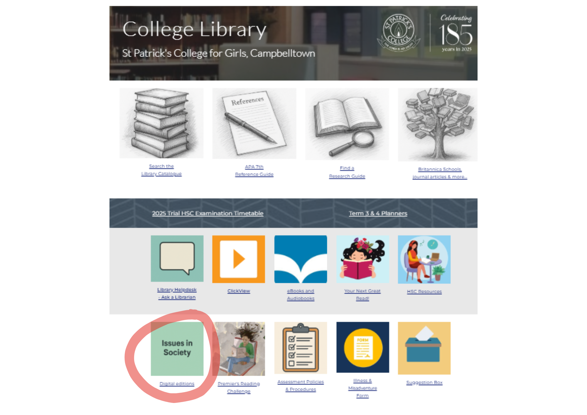 Find digital copies of all Issues in Society volumes by clicking on the Issues in Society link on the College Library website: