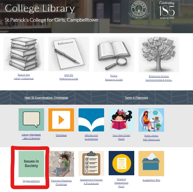 Find digital copies of all Issues in Society volumes by clicking on the Issues in Society box on the College Library website: